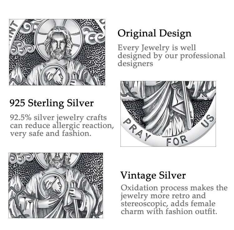 2 Rezensionen für Heiliger Judas Thaddäus, Vintage Schutz-Amulett mit Halskette | 925 Silber Anhänger