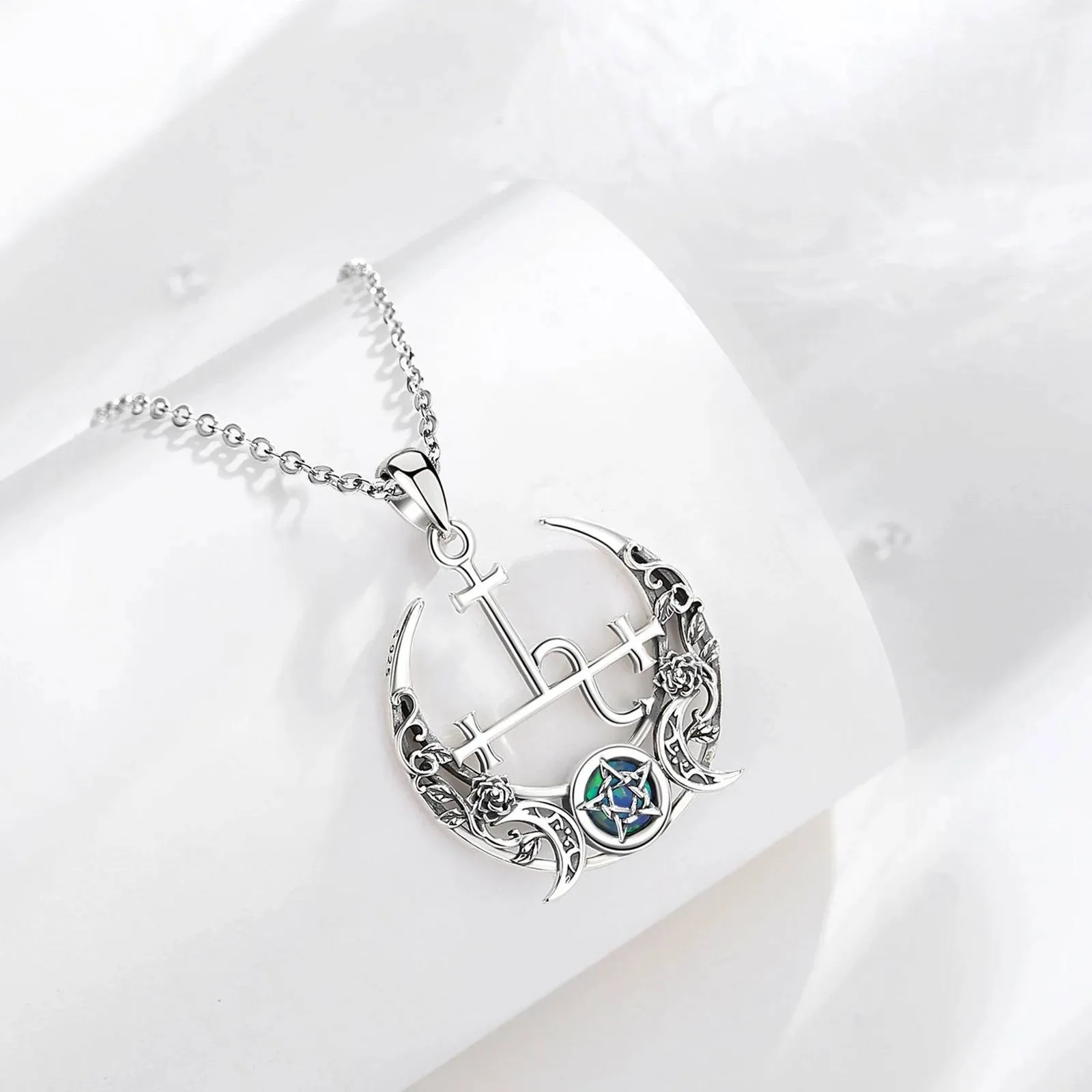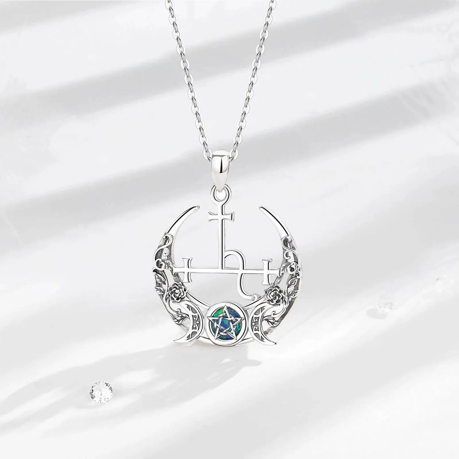 Lilith Siegel, Mondgöttin mit Rosen und Pentagramm, Wicca Halskette | 925 Silber Anhänger