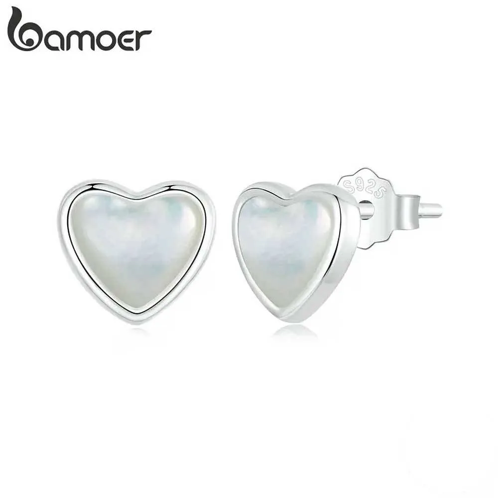 Kleine, zarte HerzHerz Das Herz trägt die Liebe und es sagt, wer wir sind. Weiterlesen...-Ohrstecker von Bamoer, kunstvoll gefertigt aus sanft-weißem Perlmutt und feinem 925 Sterling Silber.