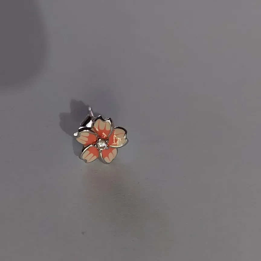 Die zarten kleinen Blüten sind in liebevollen Details gestaltet. In der Mitte strahlt ein winziger Zirkonia-Kristall, während die Blüten mit einem feinen rosa Farbverlauf verziert sind. Das fünfblättrige Design erinnert an Kirschblüten und den Frühling! ?