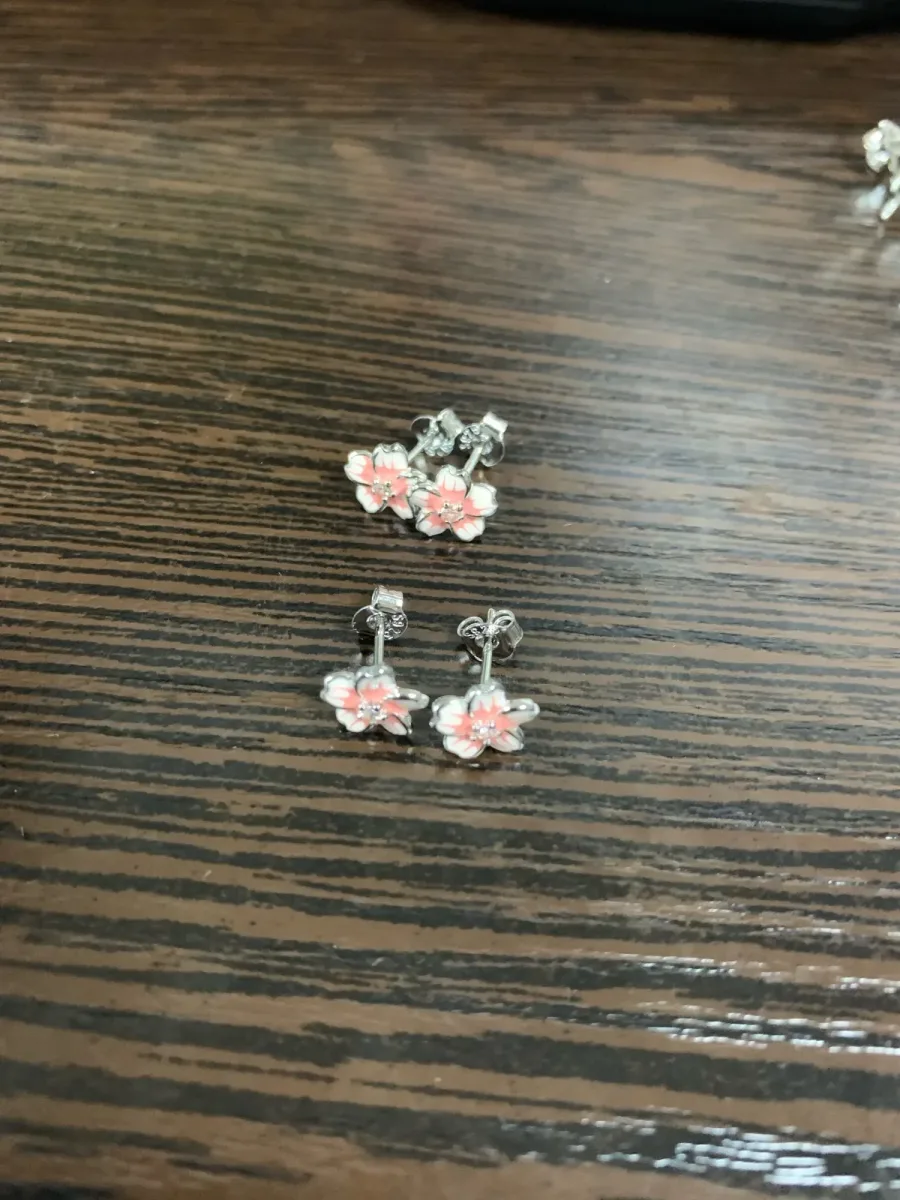 5 Rezensionen für Rosa Blüten Ohrstecker, kleine Emaille Blumen mit Zirkonia, auch für Mädchen | 925 Silber Ohrringe