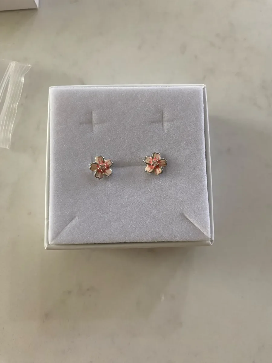 Rosa Kirschblüten-Ohrstecker aus 925-Silber.