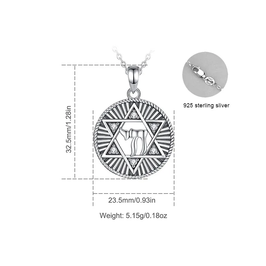 Vintage David Stern mit Zirkonia-Kristallen, Jahwe Jesus Halskette für Damen und Herren | 925 Silber Anhänger