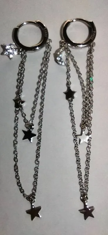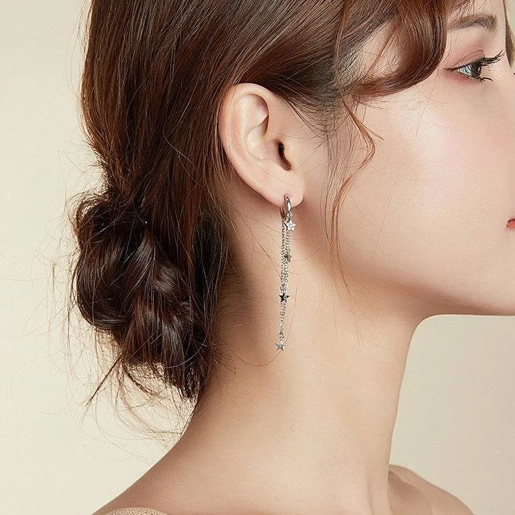 Creolen mit langen Sternen-Ketten ✨ 925 Silber