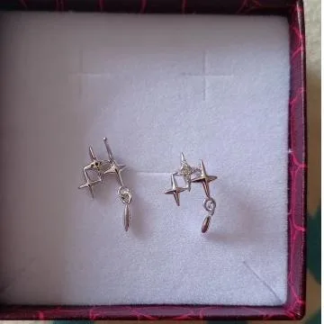 2 Rezensionen für Stern-Ohrstecker! Drei kleine hängende Sterne mit Zirkonia-Kristallen | 925 Silber Ohrringe