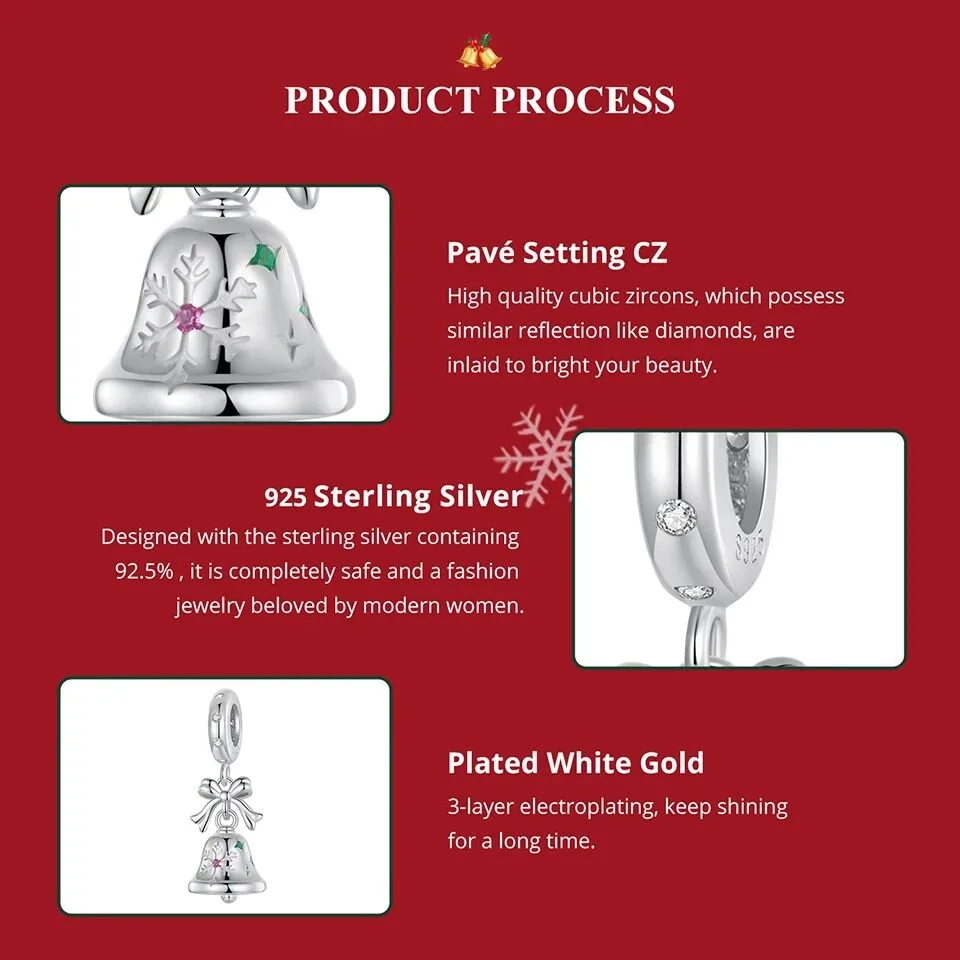 - Glockchen -Dangle oder Anhänger aus 100% Sterling Silber (925), Nickel-frei, Blei-frei, Cadmium-frei, Hypoallergen.