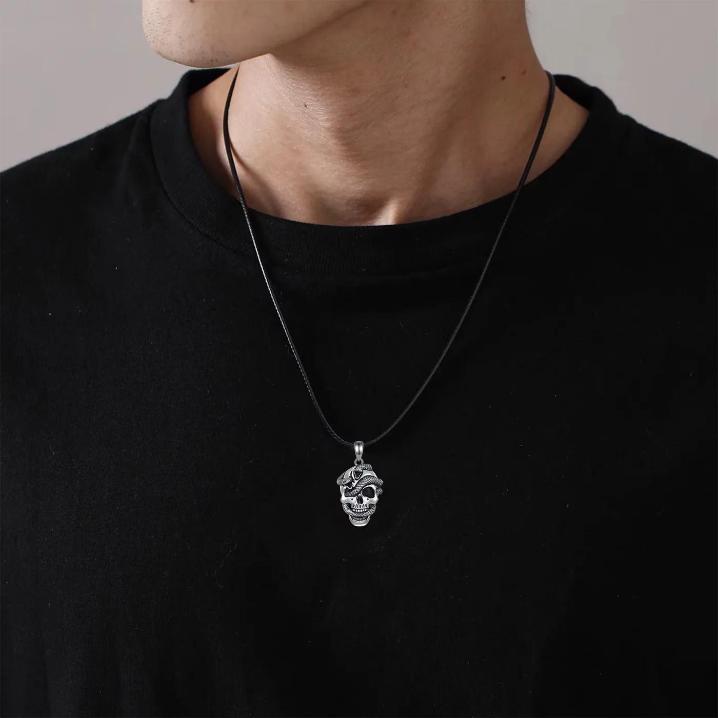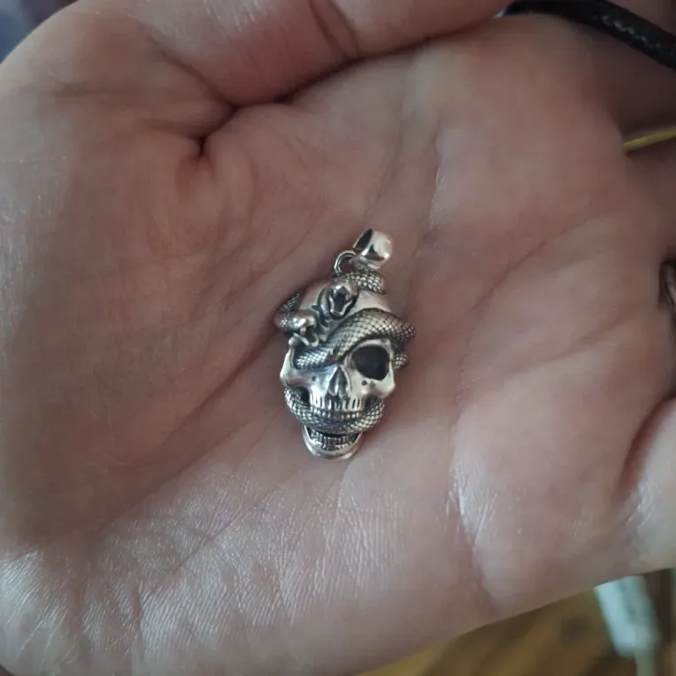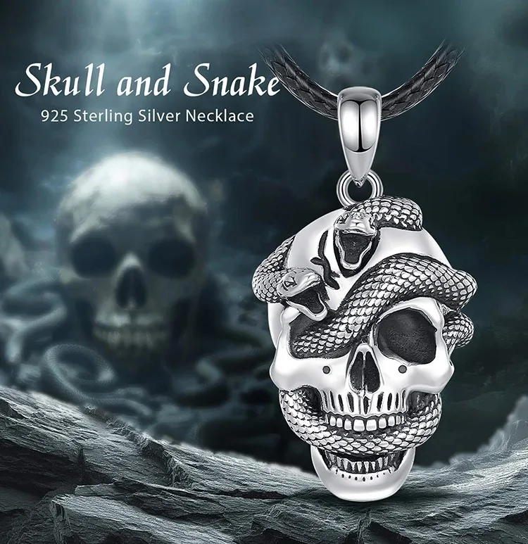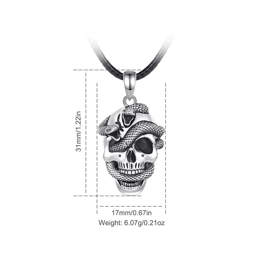 1 Rezension für 3D Totenschädel mit Schlangen, Memento Mori Totenkopf, Gothic Punk Halskette | 925 Silber Anhänger