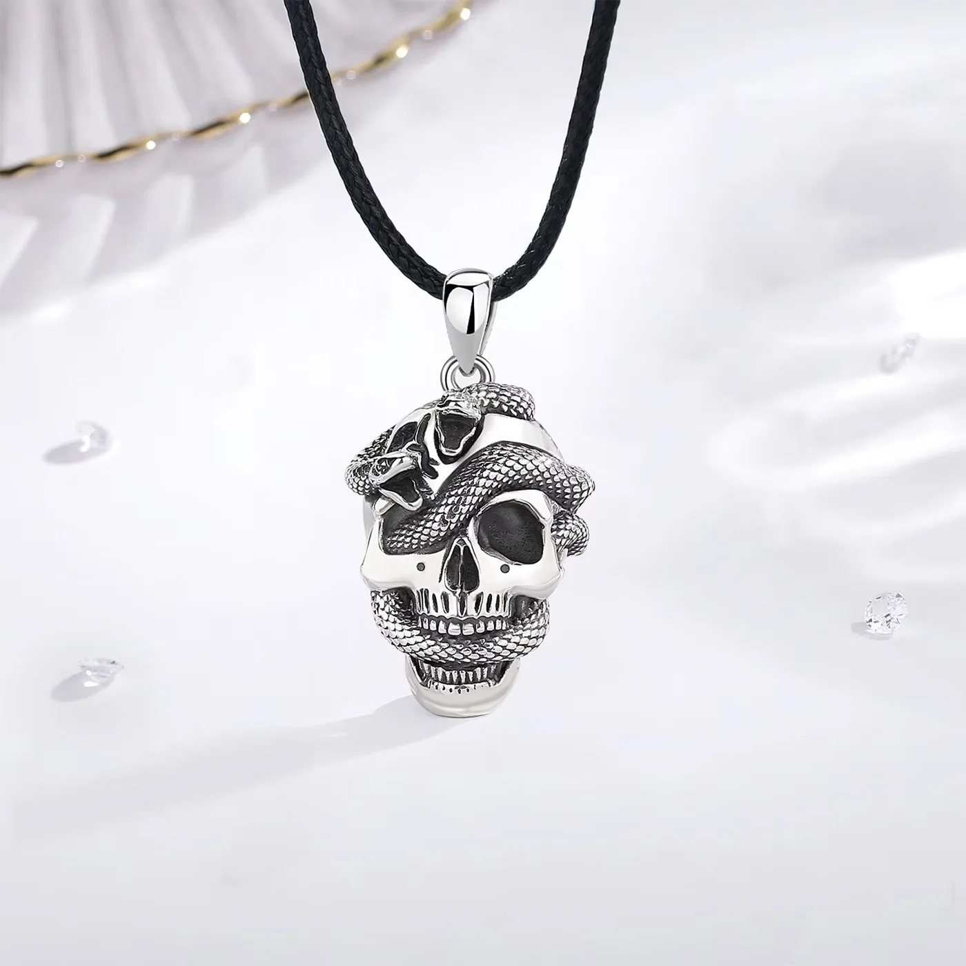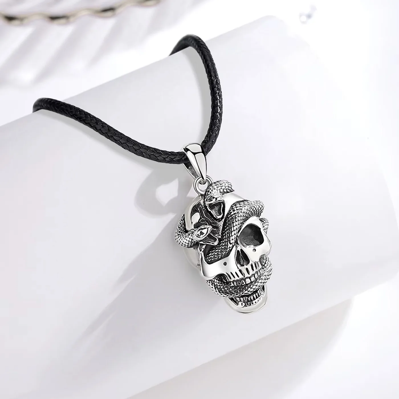 3D Totenschädel mit Schlangen, Memento Mori Totenkopf, Gothic Punk Halskette | 925 Silber Anhänger