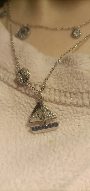 1 Rezension für Maritimes Segelboot-Collier! Funkelnde Halskette mit blau-weißen Zirkonia-Kristallen | 925 Silber