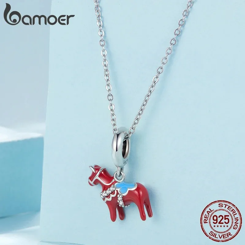 Rotes Dalapferd! Emaille Dangle Charm mit Dalarna Pferd, Schweden Symbol | 925 Silber Anhänger