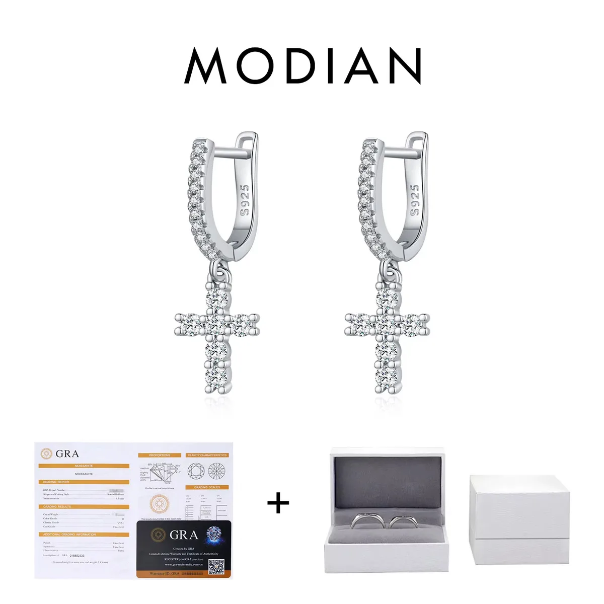 Funkelnde Eleganz und Reinheit: Diese Moissanit-Kreuz Ohrringe von Modian setzen einen exquisiten Akzent! An den Zirkonia-Creolen aus 925 Sterling Silber funkeln kleine Kristall-Kreuze aus glamourösen Moissanit-Brillanten – und erzeugen ein faszinierendes Lichtspiel.