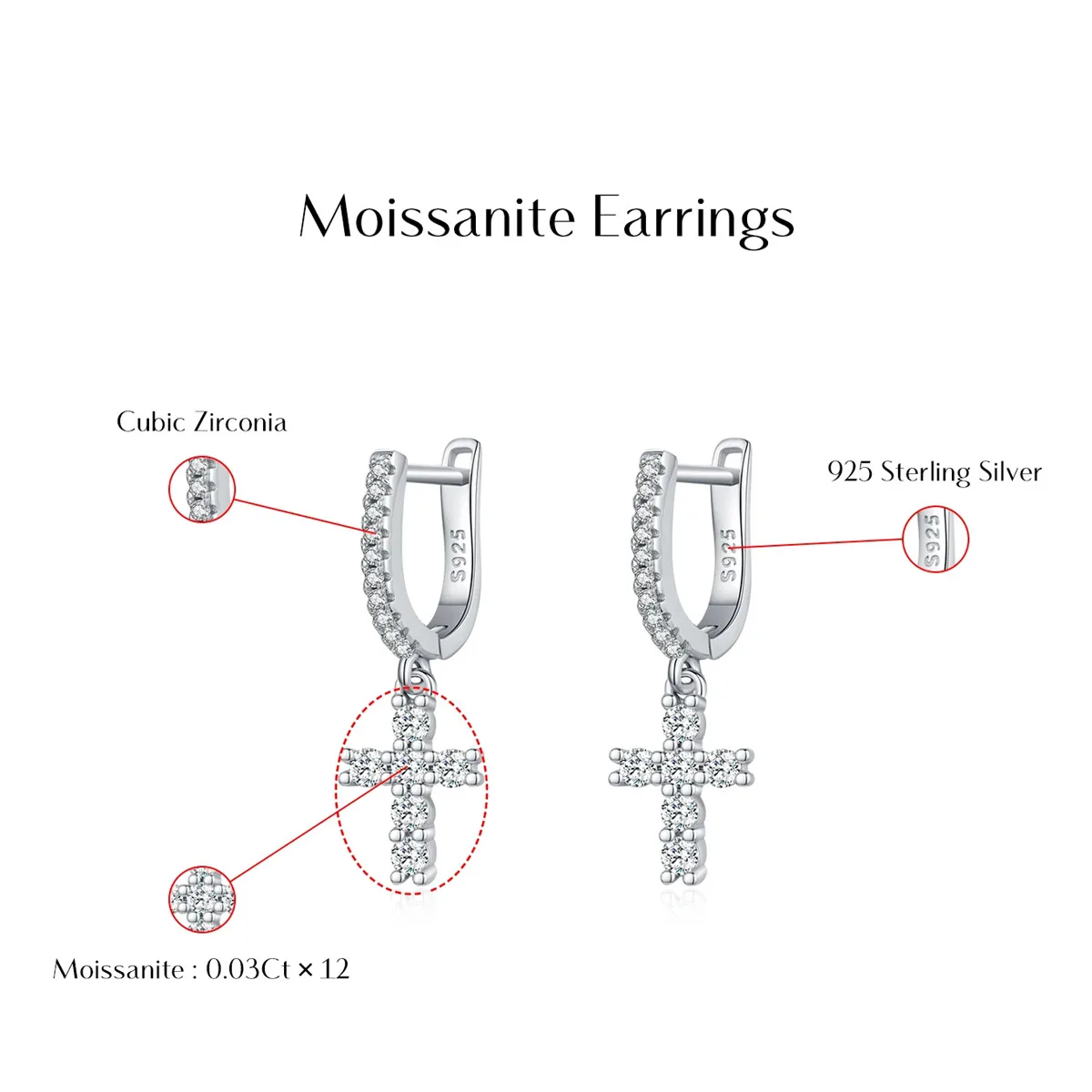 - Kreuz-Ohrringe aus 100% Sterling Silber (925), Nickel-frei, Blei-frei, Cadmium-frei, Hypoallergen.