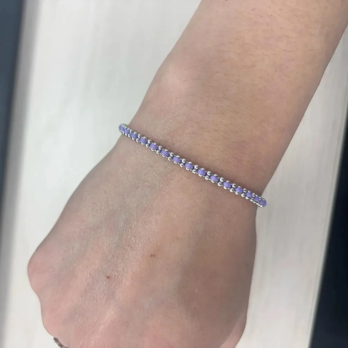 - Violettes Armkettchen aus Kordel + 100% Sterling Silber (925), Nickel-frei, Blei-frei, Cadmium-frei, Hypoallergen.