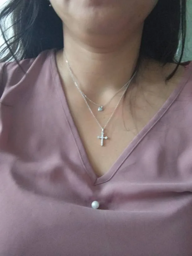 3 Rezensionen für Herz + Kreuz! Double Layer Collier mit funkelnden Zirkonia, Layering Slider-Kette | 925 Silber Halskette