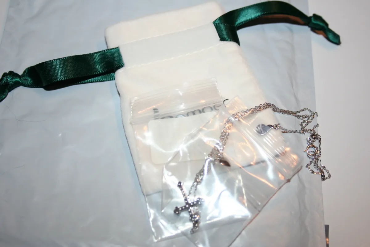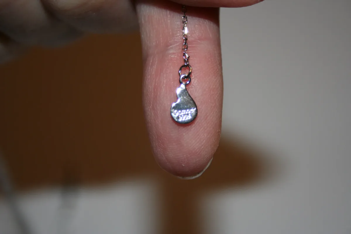 Die Doppelstränge in dieser Halskette machen sie einzigartig.: D Sehr schön war, dass die Kette mit einer Stofftasche geliefert wurde, um zu verhindern, dass es beschädigt wird. Das Collier hat den 925 Stempel auf einem Etikett an der Kette (letztes Bild). 🙂