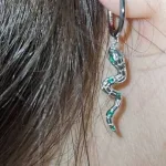 Geliefert werden die grünen Zirkonia-Ohrringe im Schmuck-Box. Herz und Schlange: die asymmetrischen Ohrhänger strahlen weibliche Mystik aus. Auch als symbolstarker Gothic-Schmuck geeignet.
