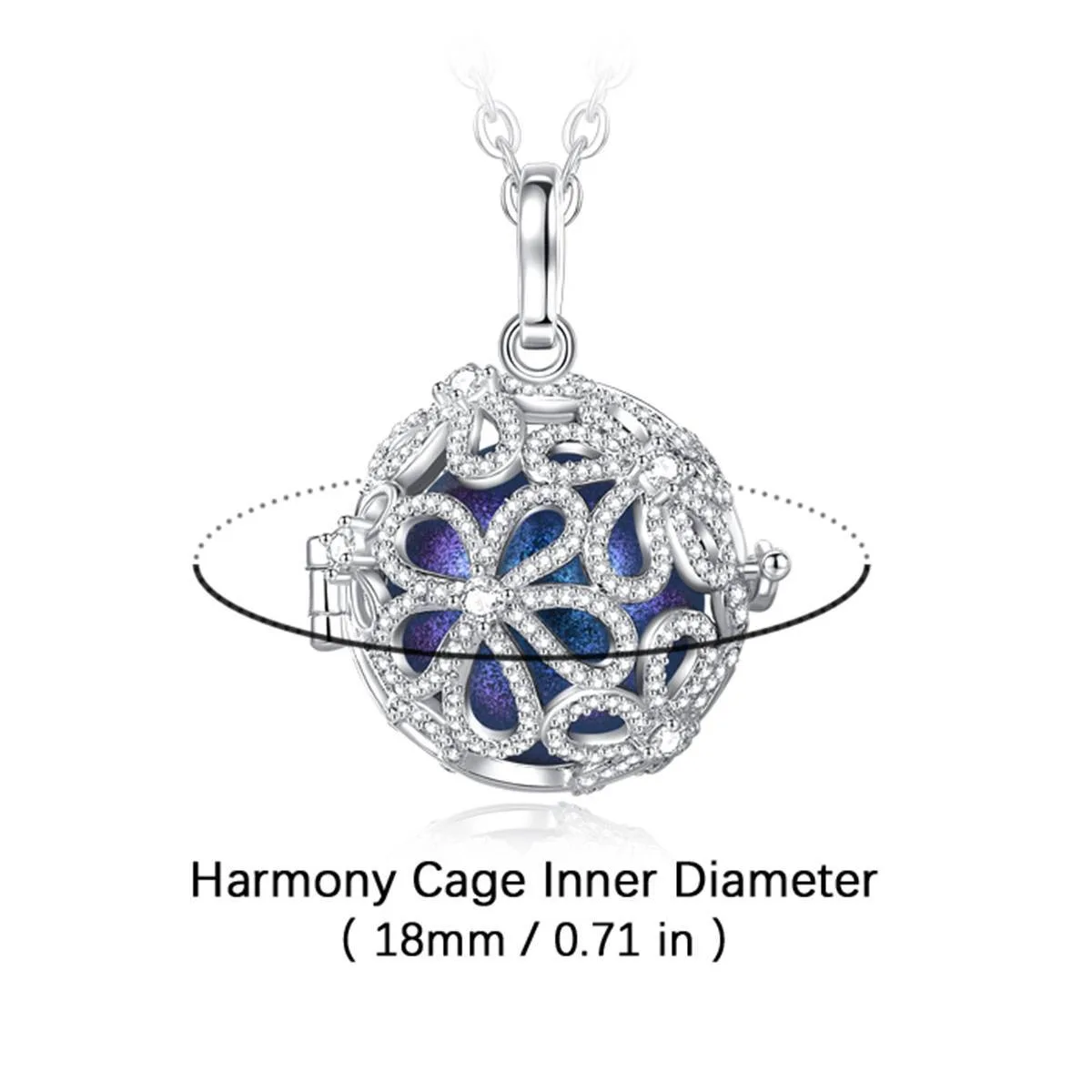18mm Klangkugel Halskette, Versilberter Blüten-Käfig mit 76cm Halskette | Engelsrufer + Bola