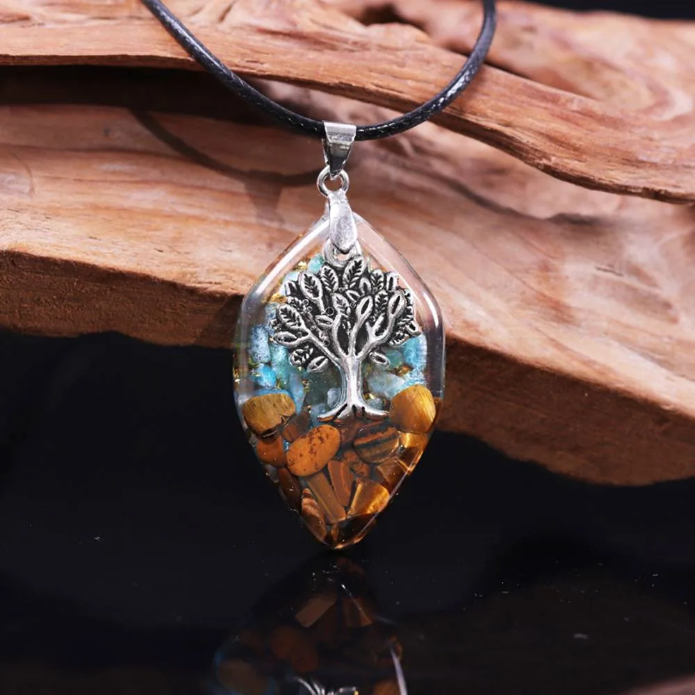 Lebensbaum Orgon-Anhänger mit Tigerauge und Apatit | Orgonit Halsketten