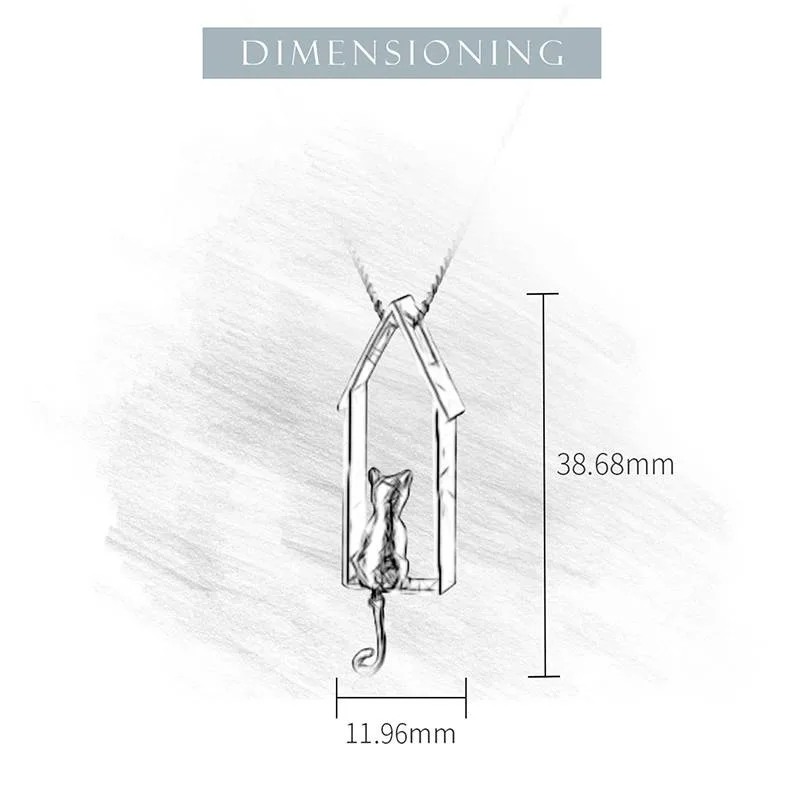 Ein origineller Halsschmuck für KatzenKatze Die Katze hat etwas Verführerisches und sehr Weibliches an sich, kann sich aber auch sehr frech geben. Weiterlesen...-Fans! Das freche Tier sitzt in einem matt silbernen Rahmen, der die Form eines Hauses besitzt. Die Halskette wird direkt durch das Dach gezogen. Im Inneren sitzt die Katze und blickt wie aus einem Fenster nach draußen. Mit einem netten Detail: der Schwanz des Stubentigers kann frei schwingen.