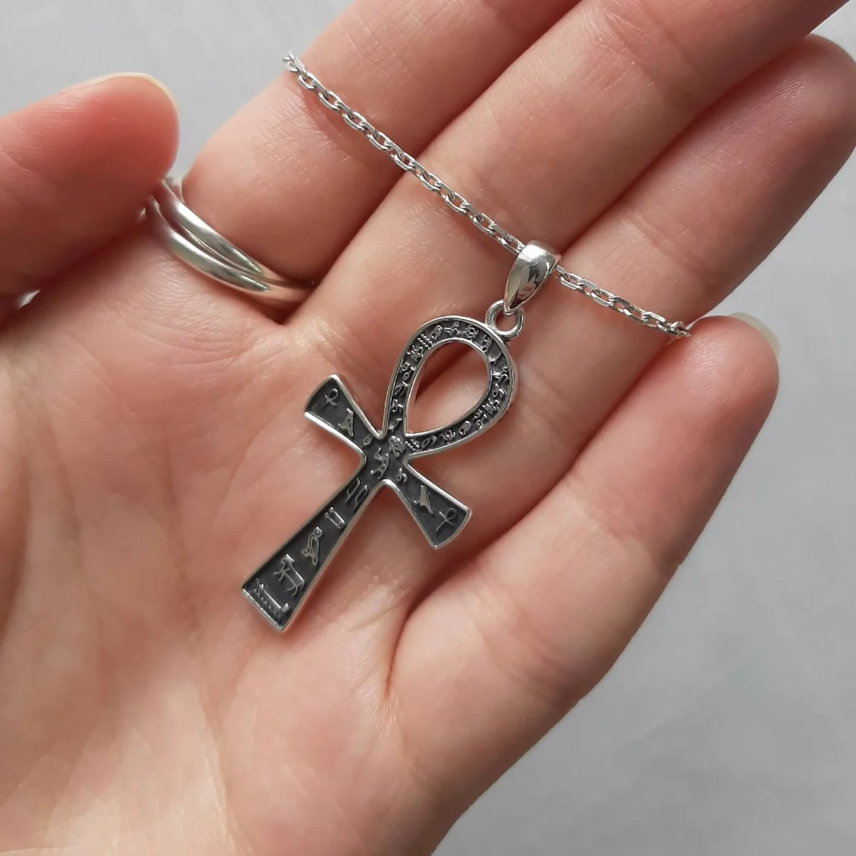 5 Rezensionen für Ankh-Halskette mit Hieroglyphen, Ägyptisches Henkelkreuz, Silber-Antik oder Gold | 925 Silber Anhänger