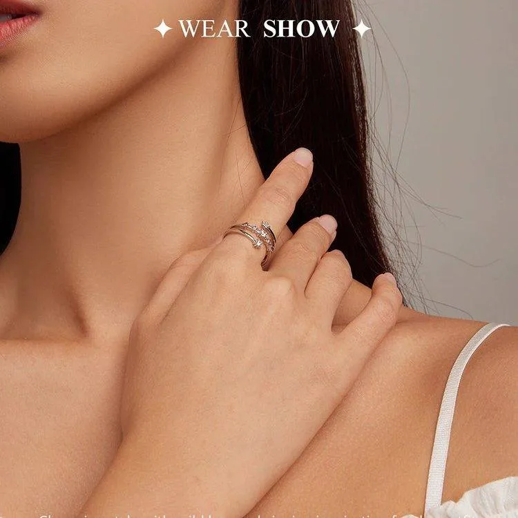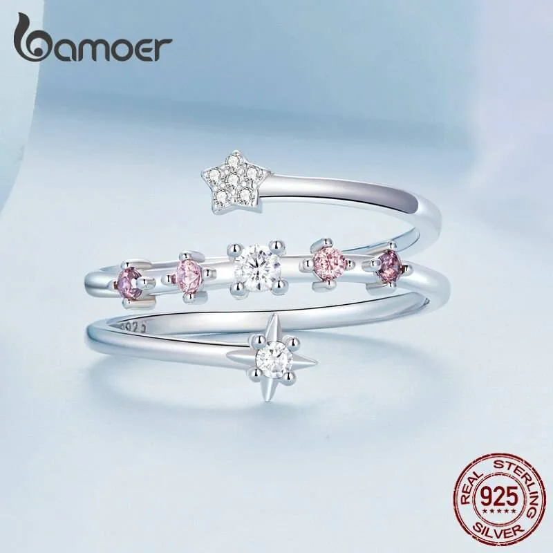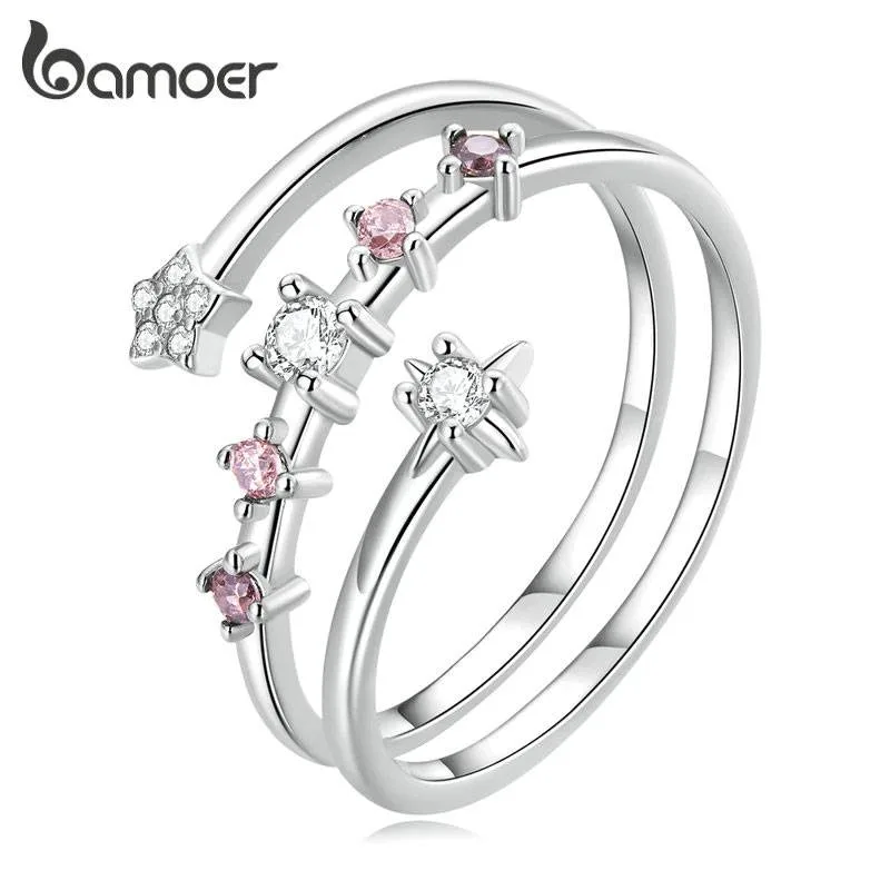 Offener Multi-Layer-Ring mit Stern Zirkonia in klar und rosa, Wrap | 925 Silber Ringe