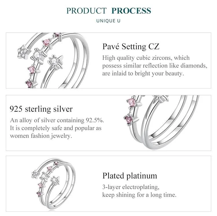 7 Rezensionen für Offener Multi-Layer-Ring mit Stern Zirkonia in klar und rosa, Wrap | 925 Silber Ringe