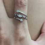 Der filigrane Ring kann durch vorsichtiges Verbiegen etwas angepasst werden. Der Multi-Layer Stil gibt einen interessanten Look und lässt sich sehr angenehm tragen. – Bitte beachten Sie, dass sich dadurch das Anpassen aber auch ein wenig kniffliger gestalten kann.