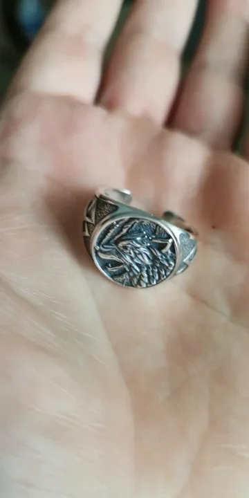 2 Rezensionen für Odin’s Wolf und Valknut, offener Ring für Herren, Wikinger Schmuck | 925 Vintage Silber