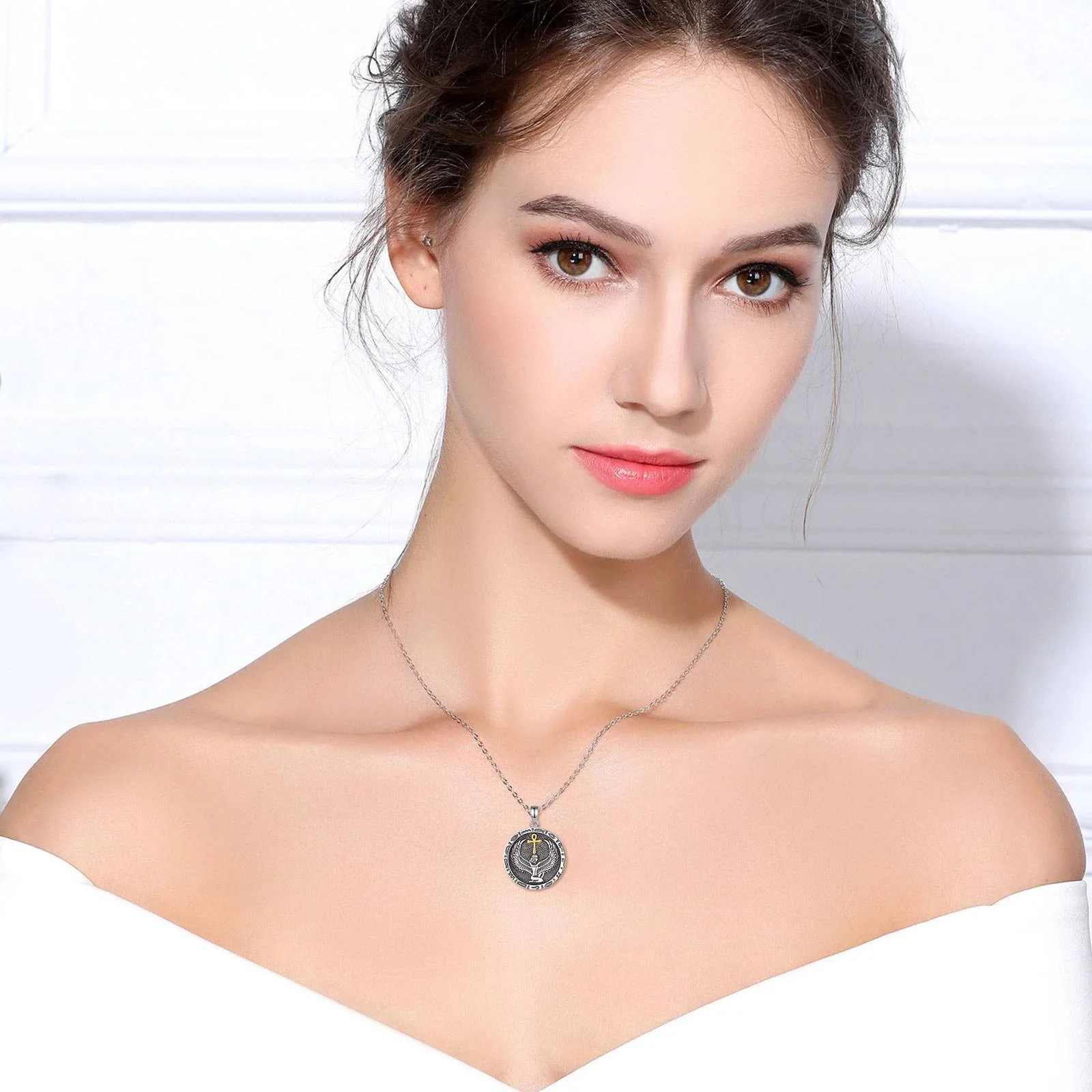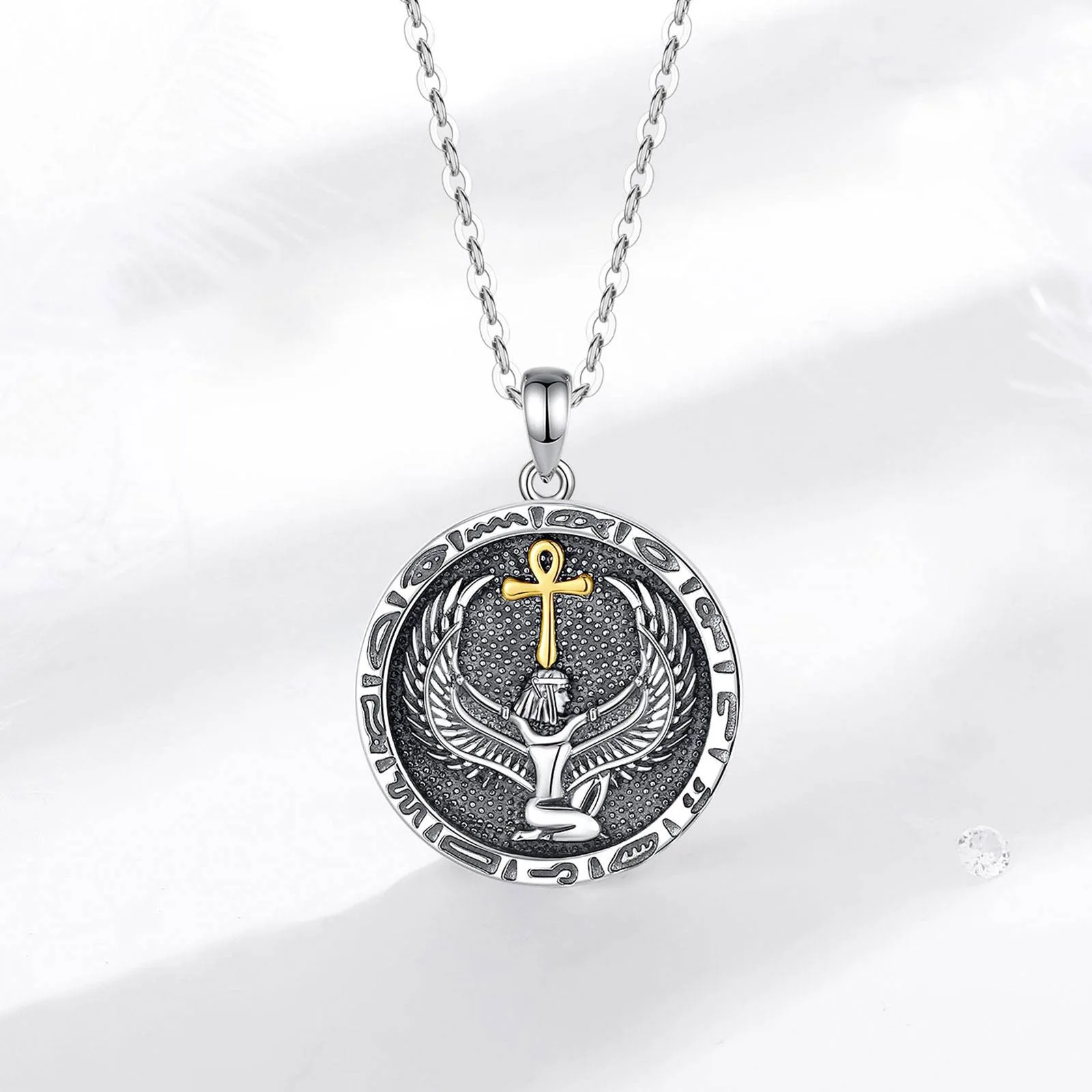 2 Rezensionen für Ägyptische Göttin Isis mit goldenem Ankh Kreuz, Vintage Silber Halskette | 925 Anhänger
