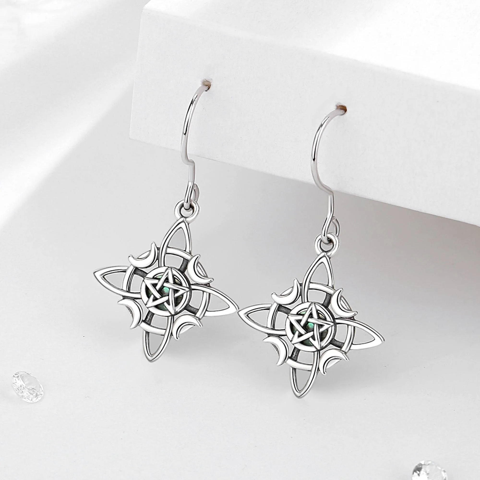 Keltischer Knoten mit Mond und Pentagramm, Hexenknoten Ohrringe | 925 Silber Ohrhänger